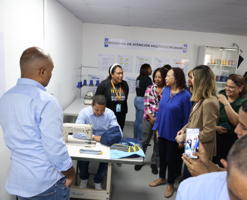 Mariela Jiménez, directora General del Sistema Penitenciario destaca el momento inédito por ser el primer taller de costura en este centro, tras un esfuerzo mancomunado con organizaciones sin fines de lucro y la empresa privada para brindar oportunidades a las personas privadas de libertad para que tengan un oficio y se reinserten a la sociedad.