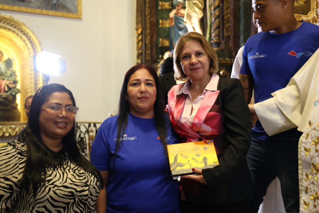 Durante la ceremonia, la Pastoral Penitenciaria de la Iglesia Católica entregó a la ministra Montalvo la Medalla de la Pastoral, en reconocimiento a su compromiso con la transformación del Sistema Penitenciario.