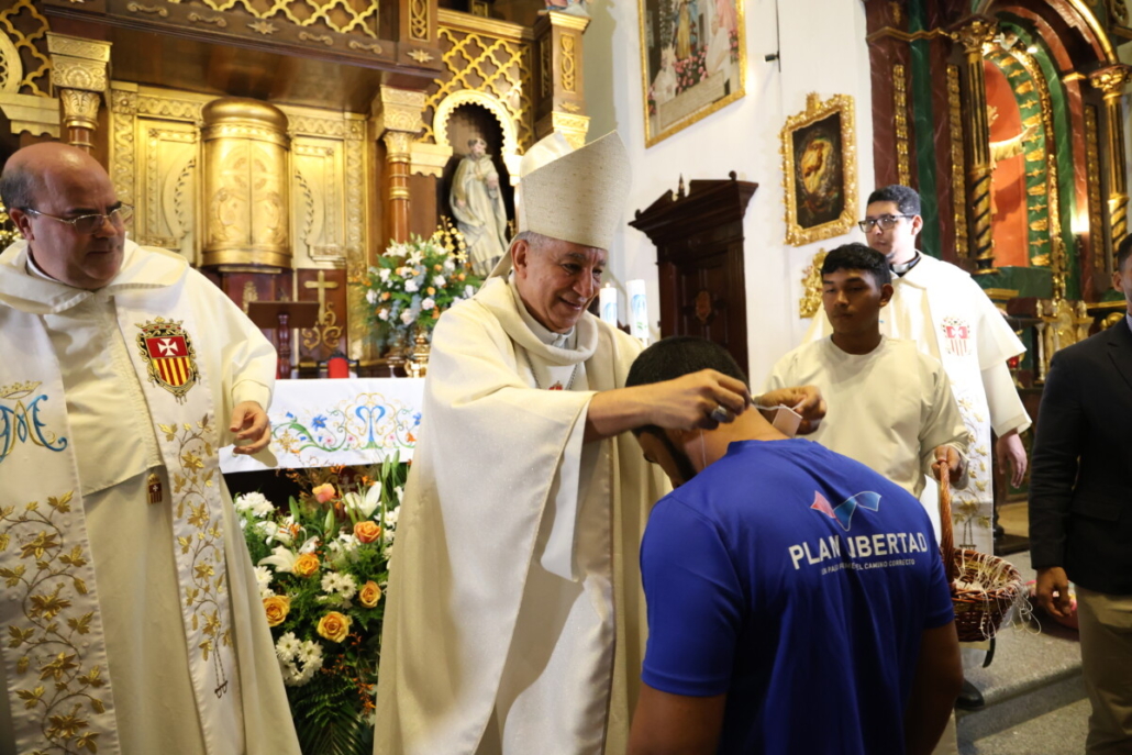 Panamá, 24 de septiembre de 2025. – Más de un centenar de personas privadas de libertad que forman parte del Plan Libertad participaron en la misa oficiada por Monseñor José Domingo Ulloa, en honor a la Virgen de la Merced, patrona de los cautivos. La eucaristía se celebró en la Iglesia Nuestra Señora de la Merced, en el Casco Antiguo de la ciudad capital.