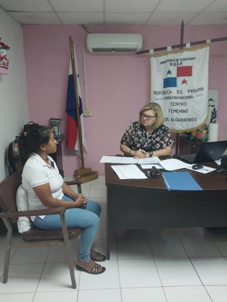 Los Algarrobos, Chiriquí, 19 de marzo de 2026.- El equipo del Ministerio de Gobierno (Mingob), liderizado por la asesora técnica de Despacho, Blanca Gómez, continúa activamente con las jornadas de evaluación y entrevistas a privadas de libertad del Centro Femenino Los Algarrobos, en Chiriquí, verificando el cumplimiento de requisitos como buena conducta, estudio y trabajo, para evaluar rebajas de pena, como parte del Plan de Descongestionamiento que lleva adelante la Dirección General del Sistema Penitenciario (DGSP).