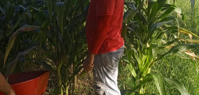 La cosecha de maíz es solo una de las múltiples actividades desarrolladas en el marco del programa Casa Granja, que incluye también la siembra de hortalizas y la cría de aves de corral.