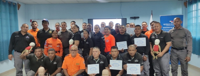 Coclé, 20 de octubre de 2025. – Con el objetivo de fortalecer los conocimientos jurídicos y las habilidades en primeros auxilios del personal custodio, la Academia de Formación Penitenciaria “Andrés Gutiérrez Bonilla” (AFP), en coordinación con el Sistema Nacional de Protección Civil (Sinaproc), desarrolló el curso de Primer Respondiente.