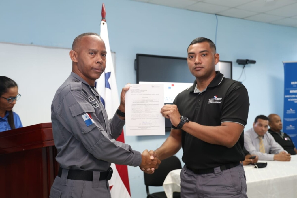 En este acto de reconocimiento estuvieron presentes por parte de la DGSP, Nielson Quijada, jefe de Recursos Humanos; Gerardo Ortiz, jefe de Seguridad Nacional y personal de la Academia.