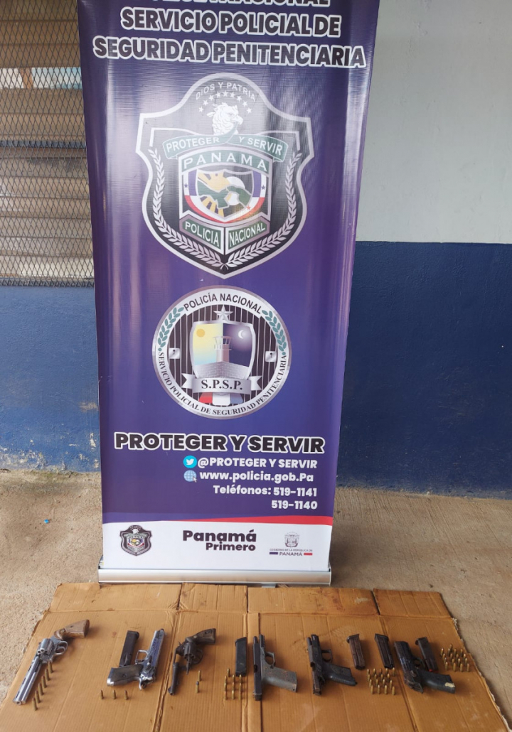 Panamá, 20 de noviembre de 2021. – Un operativo de requisa en conjunto entre el Servicio Policial de Seguridad Penitenciaria de la Policía Nacional y la seguridad interna del Sistema Penitenciario en La Joyita dio como resultado el decomiso de seis armas de fuego, 47 municiones de arma de fuego, 10 envoltorios de hierba seca, un sobre con ocho pastillas que se presume sea droga, informó Cinthia Novoa, directora General del Sistema Penitenciario.
