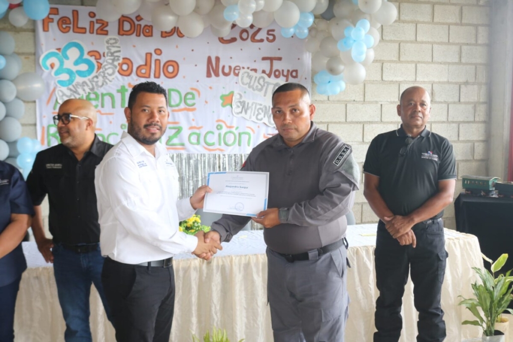 Panamá, 24 de octubre de 2025. – En un emotivo acto de reconocimiento realizado en el Centro Penitenciario La Nueva Joya, la Dirección General del Sistema Penitenciario (DGSP) entregó certificados de honor al mérito a custodios destacados por su desempeño, compromiso y vocación de servicio en las distintas unidades operativas del país, en conmemoración del Día del Custodio Penitenciario.